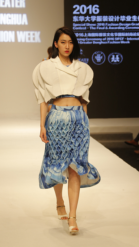 4月23日,2016上海国际服装文化节国际时尚论坛暨环东华时尚周在东华大学延安路校区圆满落下帷幕。作为环东华时尚周的传统压轴活动,2016服装设计毕业生作品大赛再度华丽登场,校长蒋昌俊、副校长刘春红出席闭幕式,120名2012级的莘莘学子经过专业教师的悉心指导、为期半年的设计提炼,共计160套毕业设计作品入围决赛,登上闭幕式的T台。
