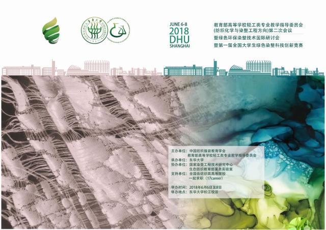 主办:中国纺织服装教育协会 教育部高等学校轻工类教学指导委员会协办: 国家染整工程研究中心生态纺织教育部重点实验室承办:东华大学支持单位:全国纺织染整类高等院校及高职院校时间:2018年6月6日至6月8日