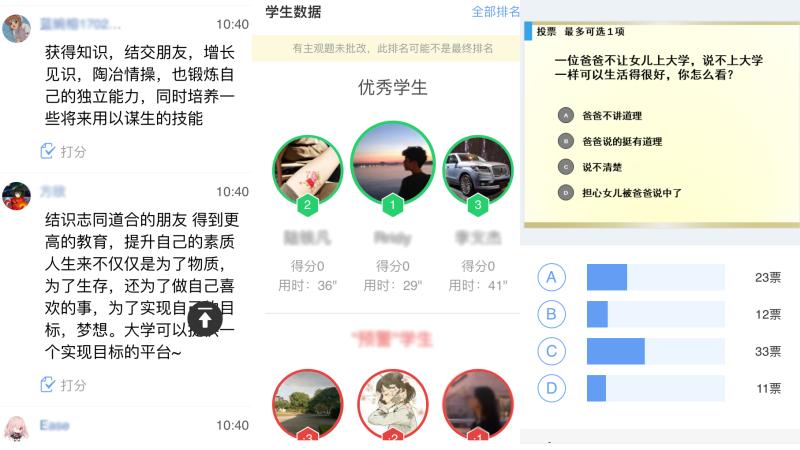 ——智慧平台的建立可以实现学生自助签到、课堂提问、师生互动、课下资料共享和交流等智能教学功能,构建了功能强大的师生共享教学课程资源库,极大地调动了学生的学习积极性。教师、学生可以获取丰富的个性化功能,系统后台形成大数据,有助于教学分析与评估。