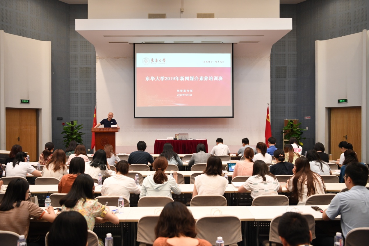 “网络时代如何坚守意识形态底线”“怎样坚持新闻工作规范”,这是学校宣传思想工作者在具体实践中时常会思考的问题。7月5日,由党委宣传部主办的东华大学2019年新闻媒介素养培训班(以下简称为培训班)上,多位校内外专业人士做了精彩的解答。百余名教职工接受新闻媒介素养专题“集训”,这也是我校连续第二年面向全校新闻信息员、专职党务干部和校院二级官方校园媒体指导教师开展的系统培训。此次培训主题为“明规范、守底线、强网络,做好新形势下的宣传思想工作”,培训为期一天,开设了四场专题报告。