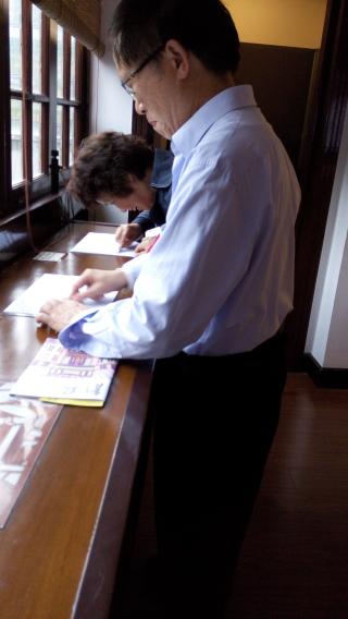 原本早起艳阳天却不料中途下起了雨,但是雨再大也浇不灭我们为他人服务的心。中午在红房子邂逅了美丽学姐之后便相约前往目的地,列车疾驰而过,来不及看沿途的风景便到达了陈列馆。馆长热情的接待了志愿者们并说今天天气忽晴忽雨,游客不是很多,让志愿者们在外面小坐一会,等待游客到来。