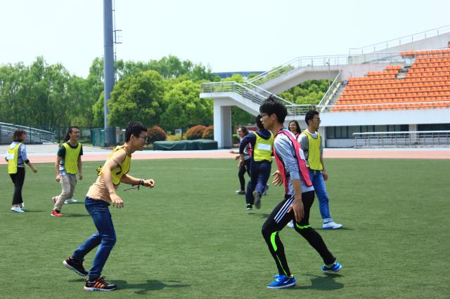 比赛过程中,每支队伍的队员们都齐心协力,努力去争取一个好的成绩。有的队伍男生较多,在背靠背运球,趾压板铺路等比赛中优势比较明显。巾帼不让须眉,女生较多的队伍也不甘示弱,在十人十一足等需要技巧和协调能力的比赛中的表现远超男子较多的队伍。