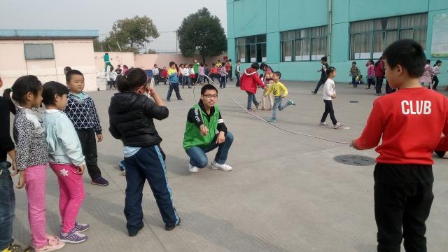 下课时间到了,同学们跟志愿者们一起玩耍。即使是老鹰捉小鸡、丢手绢等简单的小游戏,同学们也玩得不亦乐乎。今天志愿者们带来的礼物不仅丰富了同学们的课余生活,也让跳绳作为新的娱乐项目进入了同学们的课余时间。