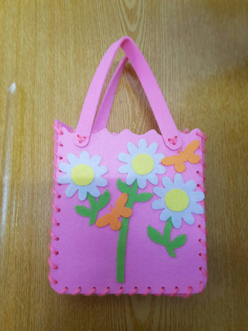大朋友们缝好不织布包后便可以在包包上面贴上自己喜欢的图案与花纹,心灵手巧的他们最后也不忘乐呵呵地拿着自己做的成品摆上各种POS来拍照呢!小不织布包拿在他们手上,各有各的姿态各有各的特色,他们在一起讨论着自己的包包今后可以用来装些啥,笑容从他们脸上展现,像一朵朵美丽的鲜花,盛开在这寒冷的冬日里,便不再冰凉。