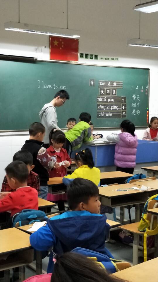 短暂的休息过后,伴随着上课铃声地响起,小朋友们迅速回到自己的座位上准备上课,志愿者们也怀揣着激动的心情走进了教室。“Good afternoon boys and girls” “Good afternoon teacher”在简单的问候过后便开始了今天的教学。英语课上,志愿者先带领小朋友们复习了他们之前学过的单词与对话并进行了一些拓展,但是毕竟因为年龄小,他们并不是十分愿意去学习课本之外的知识,但是在志愿者耐心地教导之下,他们还是开心地接受了。一节英语课就这样结束了。课间的时候,小朋友们还拿来了他们作业中不会的题目向志愿者询问,而志愿者也细心地为他们进行解答,看着小朋友们明白题目时开心的笑容,同学们也是无比的开心。接下来的音乐课和手工课也在孩子们与志愿者的积极配合下完成了最后的课程。