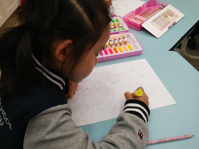 课上,主讲给小朋友讲了交通工具——飞机,课上的问题互动,小朋友仍然积极举手回答问题。但这一次的人数相对于之前少了很多,课堂小朋友的回答问题积极性总归受到了影响,绘画的积极性更是受到了很大的影响。主讲讲完飞机这个交通工具便发了画纸给小朋友,绘画的主题就是飞机。尽管参加这次课程的小朋友人数较少,但许多小朋友还是安静的坐在自己的座位上完成绘画作业,认真的同学大多是女生,另一些之前绘画作业完成的很好的男生开始心不在焉起来,寥寥几笔就完成了绘画作业,然后就在座位上等待下课。不论这次画得好与坏,下课之后,小朋友也都上交了自己的作品,跟着自己的家长回家了,东华苗苗绘画课结束。