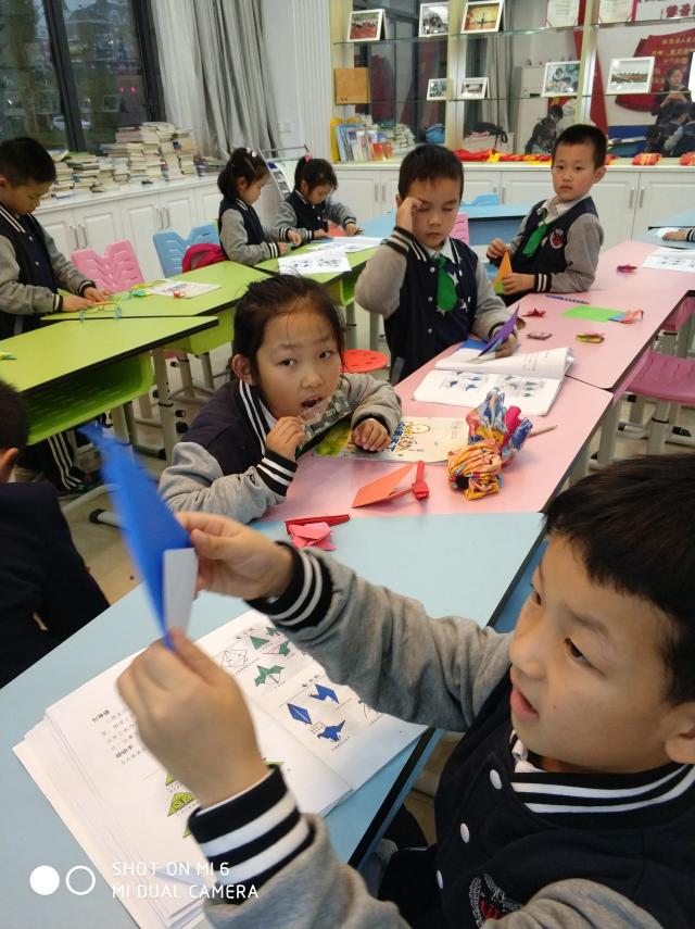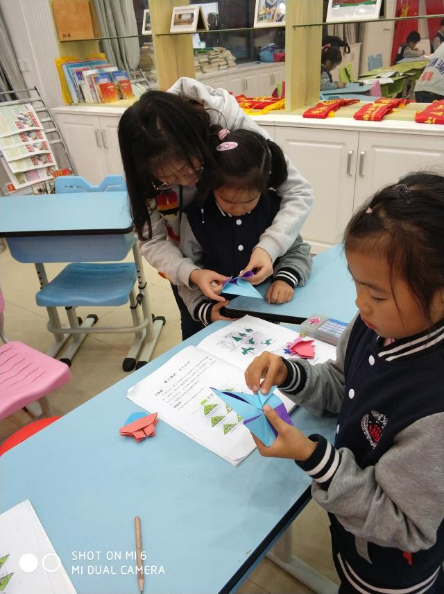 这节课,志愿者们教给孩子们宝塔和小鸡的折法。从志愿者们第一节课开始,孩子们就心心念念着纸宝塔的折法,因此上这节课时,孩子们都听得非常认真,也十分配合志愿者的授课。小鸡对孩子们而言是一种很萌的生物,因此到了折小鸡的时候,孩子们依旧很认真地折,一只只可爱的小鸡就出自孩子们灵巧的小手了。