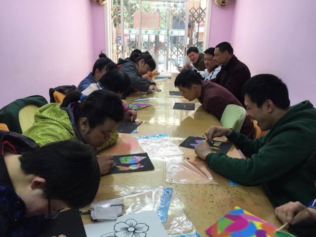 开始十分钟的时候,每位同学都非常认真的听志愿者老师讲课,认真细心的样子,生怕错过志愿者老师所讲的什么有趣内容。同学们的动手能力很强,在开始30分钟后,大部分的画面就已经定型。每位同学的思维也很有意思,有画彩虹,烟花,房子等等,没孵化都营造出很有意思的意境。