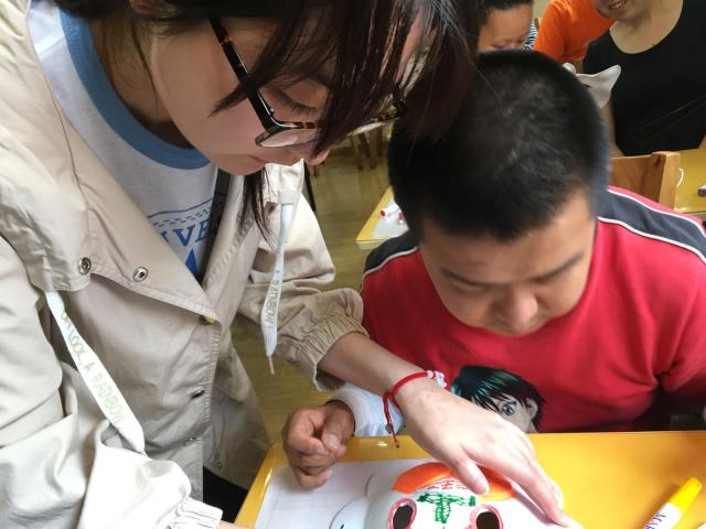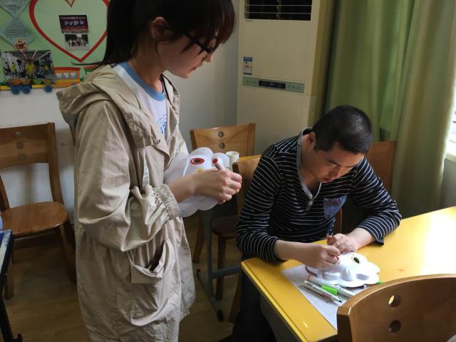 5月29日下午一点,本周的天山路阳光之家活动开始了。这期的活动主题是教同学们绘制面具,希望可以通过这项手工活动来锻炼同学们的动手能力、思维能力与协调能力。