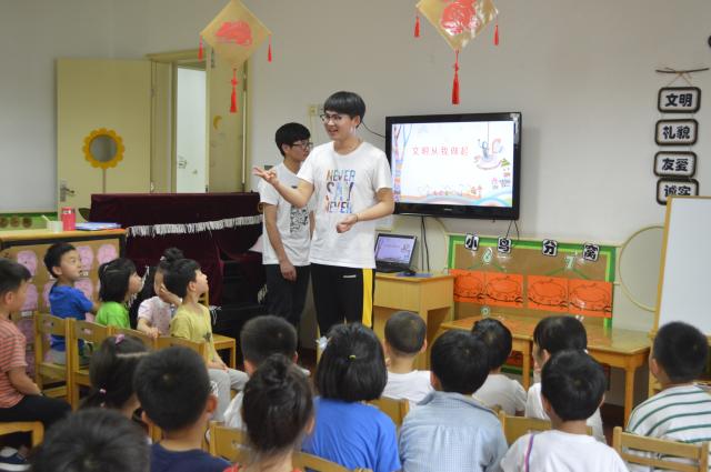 或许是因为这燥热的天气,一路上,大家都不怎么交谈。抵达幼儿园后,在幼儿园负责人的带领下,大家来到今天的授课地点,大一班。本次授课的主题是文明与安全,这在孩子们的日常生活中是不可或缺的一部分,不容忽视。主讲人通过深情的讲述以及邀请孩子们角色扮演,使得孩子们知晓文明、安全的意义与价值。其余的志愿者们也没闲着,一直努力着维持好班级纪律。相信经过本次课程,孩子们也能知晓些许道理,让纪律不再是个另老师头疼的问题。