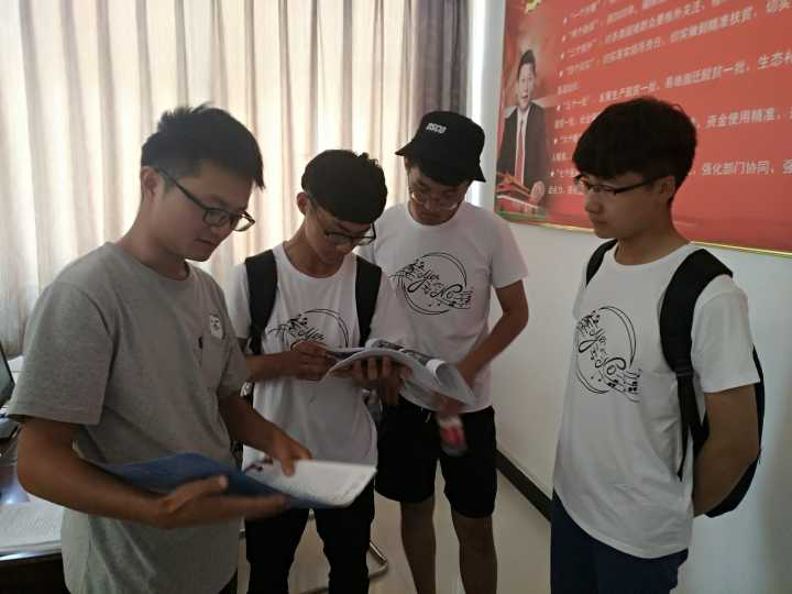 吴舒婷:早晨六点的闹铃将我从睡梦中叫醒,六点半的早餐给予我们备战远距离步行的精力与动力。烈日当头,我们行走在路上,大汗淋漓。所幸不虚此行,在各个办公室里,我们深入了解到商城县政府对贫困人民的扶贫政策以及对贫困学生的资助政策。小城民风淳朴,每个人都很热心,积极帮助我们。不论是扶贫办的叔叔还是资助管理中心的大哥哥,他们都对我们的实践活动表示大力支持,在我们要离开的时候,还特意给了我们联系方式,嘱咐我们在遇到困难的时候及时寻求帮助。尽管气温高得足以将我晒化,商城还是让我在夏日里感受到了清凉。