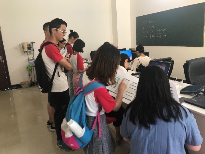 吃过午饭,实践团成员分为两组,一组继续进行志愿者活动,帮助家长和学生以最快的速度,最高的质量办好生源地助学贷款;另一组的同学则负责整理前期准备的高校助学政策和生源地贷款的相关资料,同时与学生资助管理中心的负责人积极沟通交流,准备好微信推文的资料。紧张准备之后,实践团成员认真仔细的完成推文的编辑工作,并交予负责人进行审核,然后通过微信公众号发布!今天的志愿者活动圆满结束后,学生资助管理中心的负责人对实践团表示感谢,并进行合影留念。