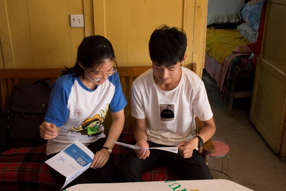 实践团的成员从三个方面详细地介绍了国家的资助政策。一是入学前不用愁。全国大多数县都开办了生源地信用助学贷款,家庭经济困难的新生,可向家庭所在地的县级教育部门提出申请,办理贷款用于支付学费和住宿费。中西部家庭经济特别困难的新生,还可以申请新生入学资助,用于支付入学报到的交通费及入学后短期生活费。二是入学时不用愁。如有新生实在不能筹集到足够的上学费用,可以通过新生入学“绿色通道”直接报到入学,缓交学费和住宿费。三是入学后不用愁。学校对通过“绿色通道”入学的学生和申请资助的其他学生,将全面客观地进行家庭经济困难资格和程度认定,采取不同的措施给予精准资助。其中,解决学费、住宿费问题,以国家助学贷款为主;解决生活费问题,以国家助学金为主;解决突发临时困难问题,以临时困难补助为主;解决综合能力和生活补助问题,以勤工助学为主。