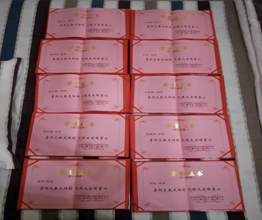 最后刘老师给每一位实践队员都颁发了荣誉证书,来鼓励实践团队员们的奉献精神。同时,荣誉证书也代表着实践团的成员在此次太阳村之旅中圆满完成了任务。