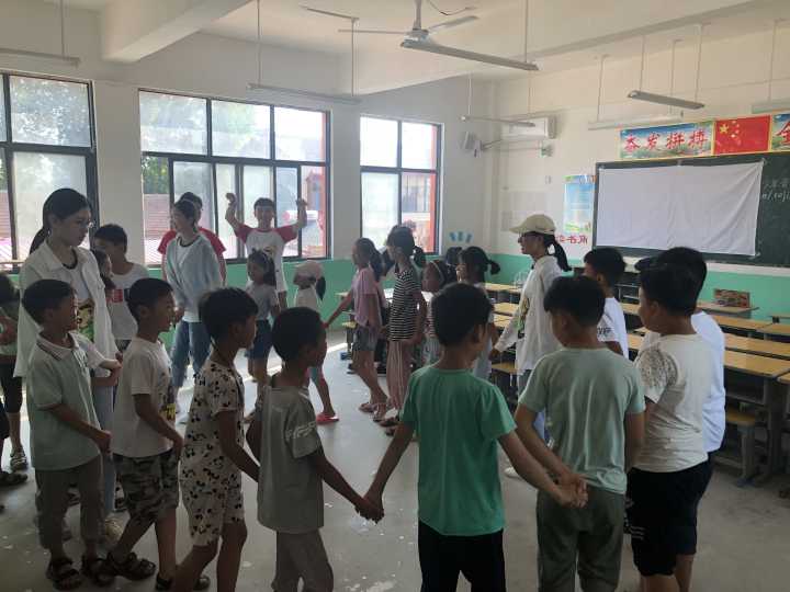 布置好活动场地后,实践活动也正式开始。经过简短的相互认识后,我们进行了一些开场小游戏,尽量让每一个孩子都参与其中。游戏中,孩子们也都放下胆怯与羞涩,极力配合我们完成各项游戏,实践队员与孩子们都熟逐渐悉起来。