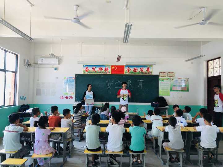 游戏环节过后,我们便开展了以“安全教育”为主题的相关讲座。当初制定留守儿童相关活动时,考虑到这些孩子由于从小缺乏父母的陪伴,对安全方面的教育与管教可能有些薄弱,并且具相关资料显示,每年有大量留守儿童会应各类原因而发生安全问题,所以我们认为很有必要加强这一块的教育。由于当地教育资源的缺乏,讲解员不得不以各类形象的表演对孩子们讲述各类安全隐患及解决措施。由于河南各地每年溺水儿童较多,我们对游泳安全问题进行了着重讲解。讲解过程中,孩子们都在很认真地聆听,并积极配合讲解队员回答各类问题。
