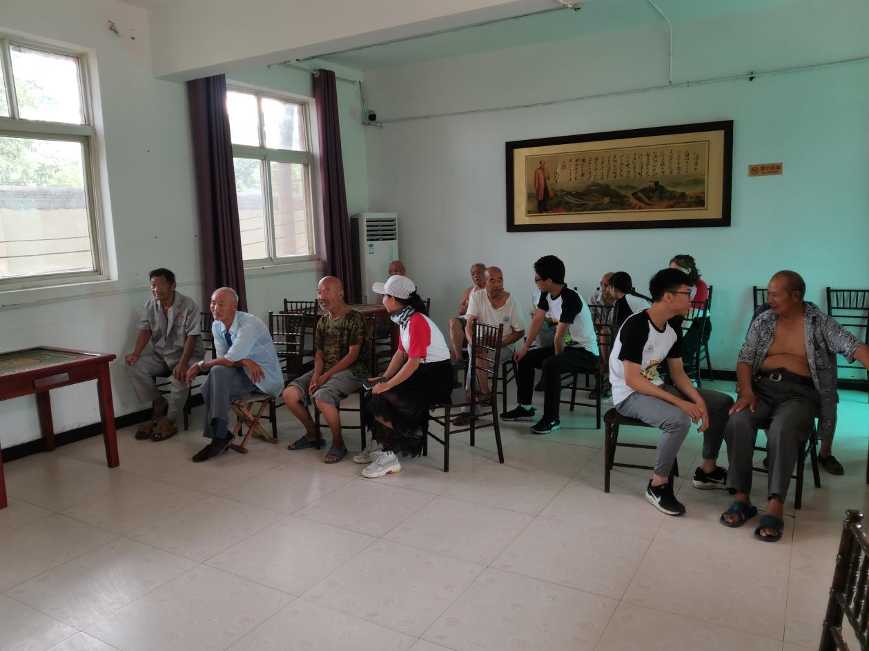 为了进一步了解老人们在敬老院的生活,拉进与老人们的距离,方便后续活动能够更加顺利地进行,带给老人更多欢乐。实践团成员各自与两三位老人一起聊天,拉拉家常。在聊天过程中,团队成员了解到了老人们对焦裕禄无比的感恩,可见焦裕禄在兰考县人民心中的地位是如此之高。同时还了解到了兰考县敬老院提供免费食宿以及必要的照顾,老人在敬老院不用花费一分钱,这让团队成员进一步感受到了兰考县民生政策真的做得很好很全面。除此之外,老人们还通过自己家庭的情况给团队成员讲述了资助政策在兰考县的普及和落实情况,讲了近10年他们所感受到的国家以及兰考资助政策的变化。这使实践团更深入地了解兰考县一些独特的资助政策。