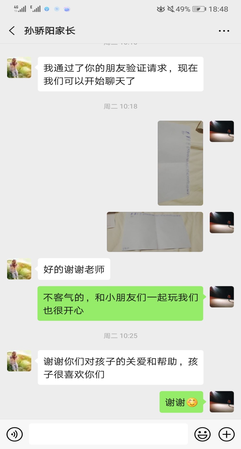 在今天帮助小朋友与他们的父母互动的活动中,我看到了留守儿童的不容易,看到了进城务工的爸爸妈妈们的无奈与心酸,有的小朋友在和父母发微信的时候眼泪已经止不住了,父母们也是泣不成声,让我感触颇深,长久的分离对于小朋友们的成长过程来说真的是有缺憾的,我通过这次活动,更加坚定了我们团队要好好宣传国家的政策,让更多年轻人知道不是非要远离家乡,远离亲人才是好的出路,越来越多人知道政策以后,我想也就不会有那么多的孩子早早的与父母分离,而让父母错失了陪伴孩子们的宝贵时光!