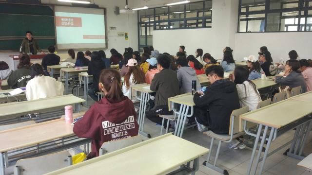 在考研篇的交流中,杨煦同学准备了内容丰富的PPT,满满的干货,既包含对考研时间节点的把握和相关科目的复习方法,又谈及良好的作息习惯和持之以恒的态度,这些都给15级同学们留下了深刻的印象。赵雅洁同学也针对考研鼓励15级同学们只要不断的坚持下去就一定可以成功。两位考研成功的同学都不约而同地提到:考研绝不是一朝一夕能够完成的事,需要长久的坚持。此外,考研需要一个坚定的目标,一份详细的学习计划,一颗坚定不移的心,这三个因素,缺一不可。的确,考研是一场持久战,唯有笑到最后方能笑得最好。
