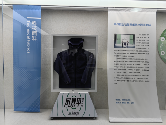 东华大学俞建勇院士团队通过自研高导湿生物基高分子及微纳米结构调控,结合无氟防泼水表面改性、无氟粘合等多个关键环节的技术创新,打造出无氟生物基防水透湿膜,核心指标达国际先进水平,成功攻克了“无氟高性能”这一世界性难题,为世界交出“中国方案”。