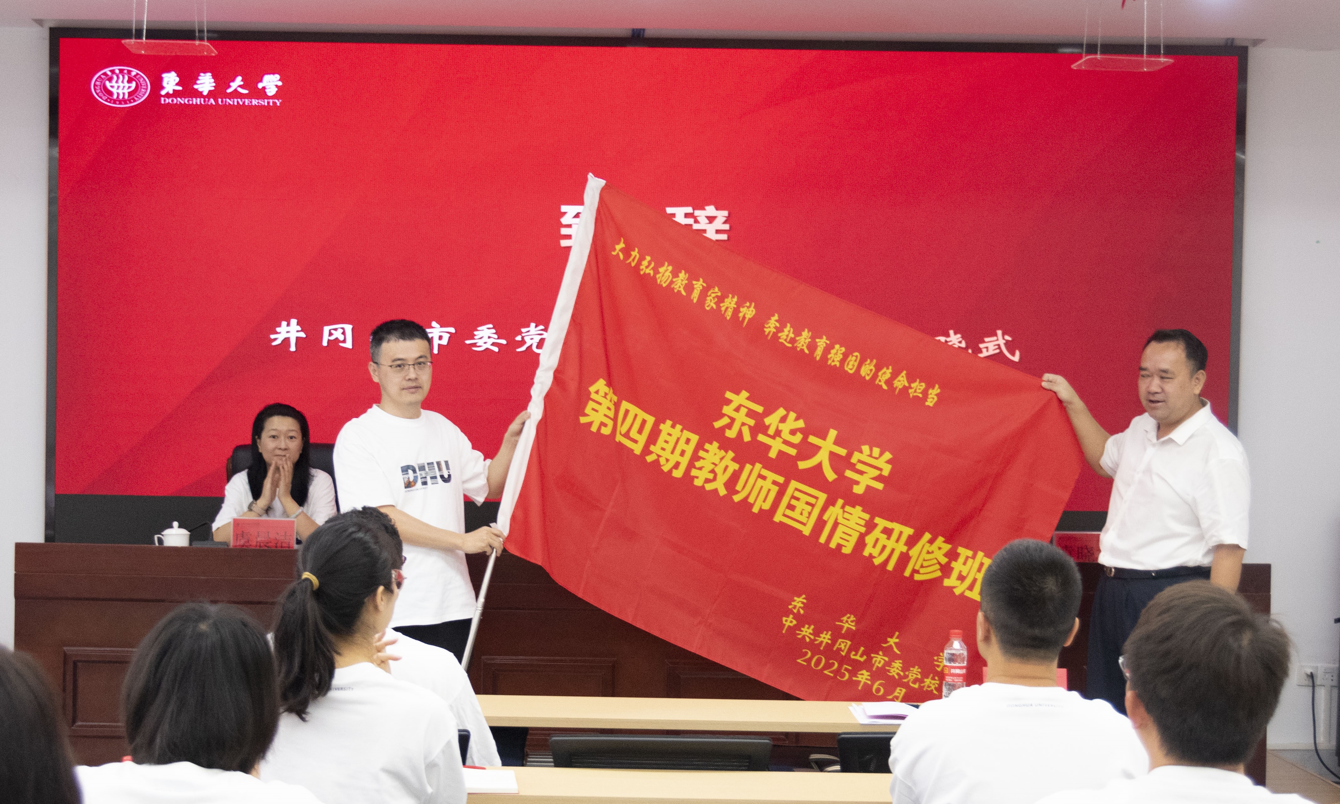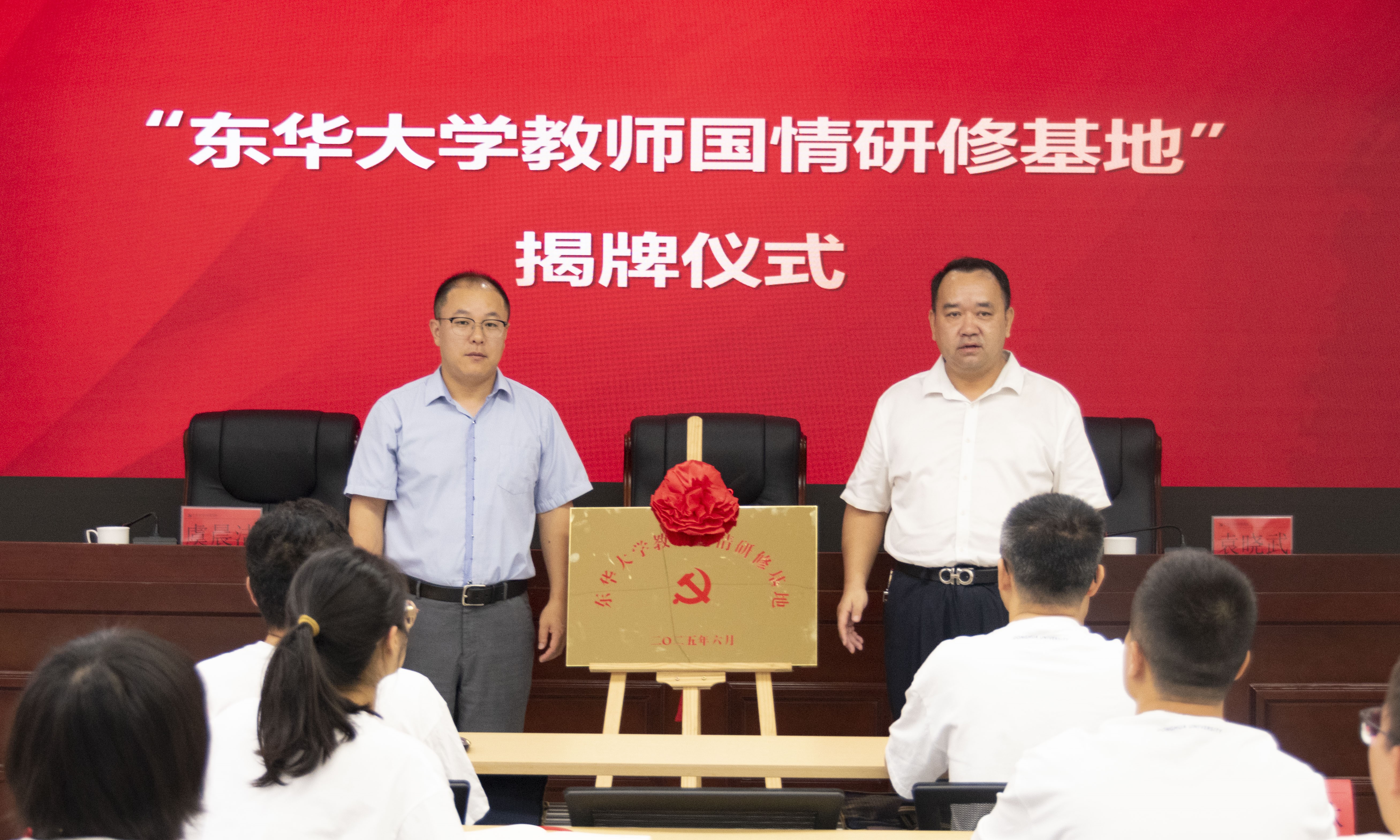 6月24日,学校第四期教师国情研修班开班典礼暨“东华大学教师国情研修基地”揭牌仪式在江西省井冈山市委党校举行。党委教师工作部部长、人事处处长、人才工作办公室主任张光林,井冈山市委党校常务副校长袁晓武参加开班式,来自各二级单位党组织的30名骨干教师代表参与研修活动。