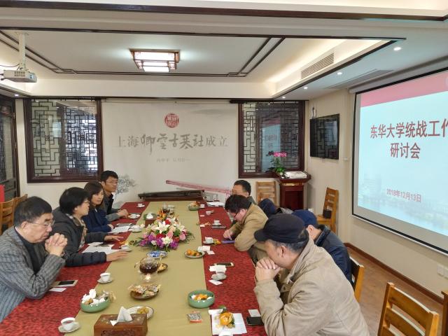 岑洁首先就2018年学校统战工作进行了总结。她表示,学校统战工作在学校党委统一领导下,进一步完善了学校大统战格局;围绕学习宣传贯彻党的十九大精神和全国教育大会精神,通过组织双月座谈、“不忘多党合作初心,继续携手前进”专题教育活动和“统一战线与改革开放四十周年”征文等系列活动不断加强党外知识分子的思想政治工作;通过“党委出题、党派调研”活动,激励了广大统战成员立足岗位建功、积极建言献策;通过联谊交友,选派党外代表人士和留学归国人员参加校内外专题培训与挂职等进一步加强对党外人士的培养教育和推荐使用;通过组织民主党派统战团体骨干培训班,组织纪念“五一口号”70周年系列活动等加强党派团体建设,提升学校统战工作影响力;通过开展“侨青论坛”品牌活动、侨法宣传以及侨眷和留守老人关心慰问等活动,组织台师大来校考察交流活动等持续做好港澳台侨工作;成立学校民族宗教工作领导小组,加强协同合作,进一步推进学校民族宗教工作;通过加强区校联动、校际调研交流等积极拓展统战对外交流合作平台。在学校统一战线成员的共同努力下,本年度共有8人次当选全国侨联委员、上海市知联会理事、市欧美同学会常务理事、理事和松江区侨联副主席、欧美同学分会会长,获得全国归侨眷先进个人、上海市社会主义学院杰出校友等荣誉;在上海市社会主义学院与上海市统一战线理论研究会纪念改革开放40周年有奖征文活动中,获特别荣誉奖1篇和三等奖1篇;在九三学社中央首届“九三教育论坛”征文中获二等奖2项;在上海市侨务调研优秀成果中获二等奖2篇;民盟委员会获民盟市委组织活动创新奖。岑洁希望在今后的工作中,各民主党派统战团体进一步行动起来,及时总结经验,改进工作方法,加强互动交流,共同推进学校统一战线工作。