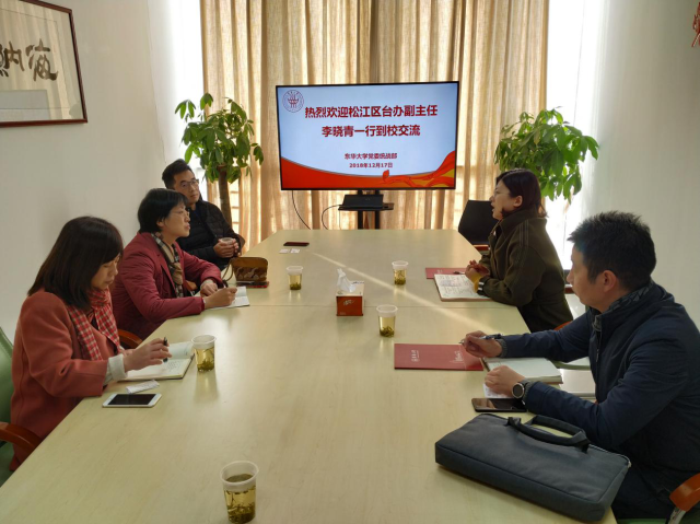 12月17日上午,松江区台办副主任李晓青一行到我校走访调研。统战部部长岑洁、副部长叶晓燕,人文学院传播系主任叶长海接待了来宾。