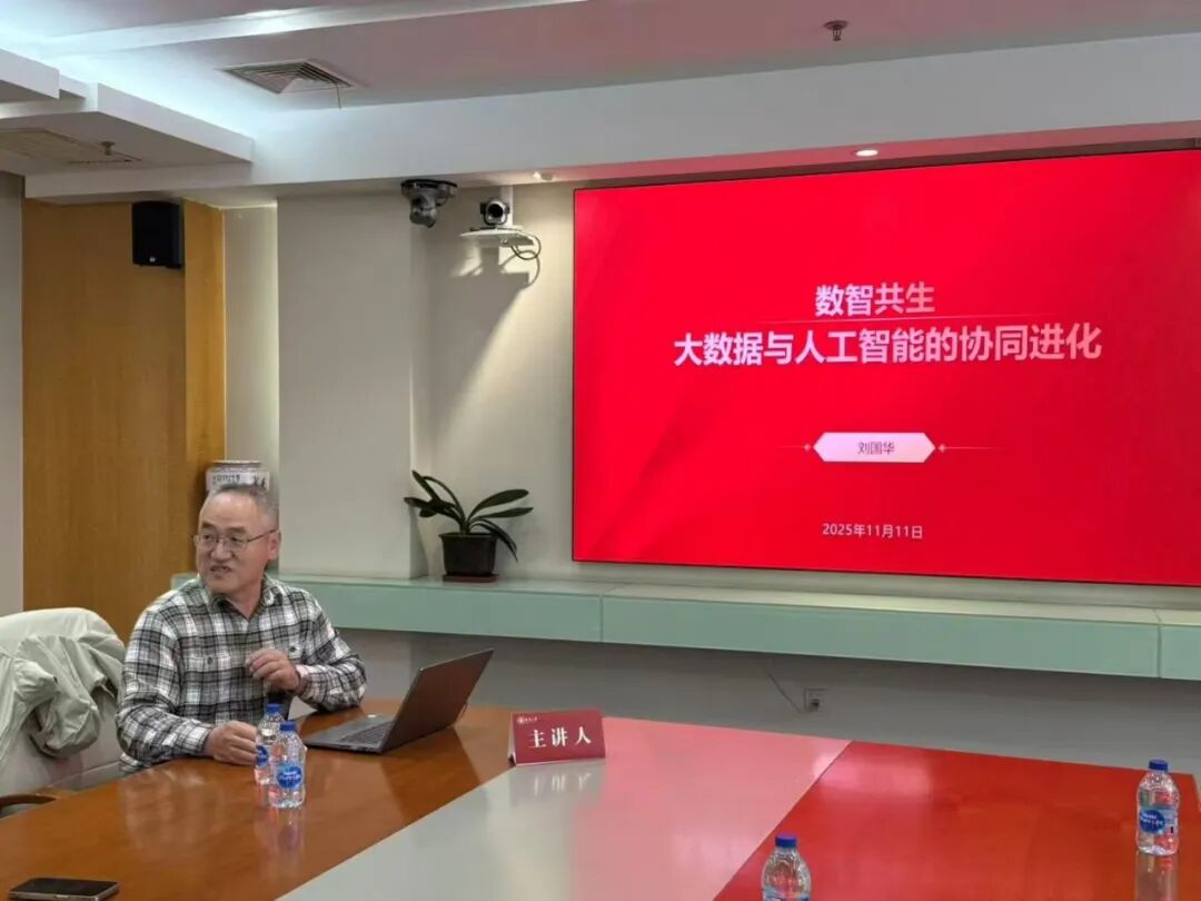 刘国华教授以“数智共生——大数据与人工智能的协同进化之路”为题,系统梳理了人工智能的发展脉络,聚焦前沿技术动态,围绕“智能之路:人工智能的发展历程”、“数智协同:大数据与AI协同进化”、“多元模型:大小语言模型的共存”以及“智能之形:大模型与AI Agent”等专题展开深入讲解。报告内容翔实,讲述深入浅出,现场反响热烈。