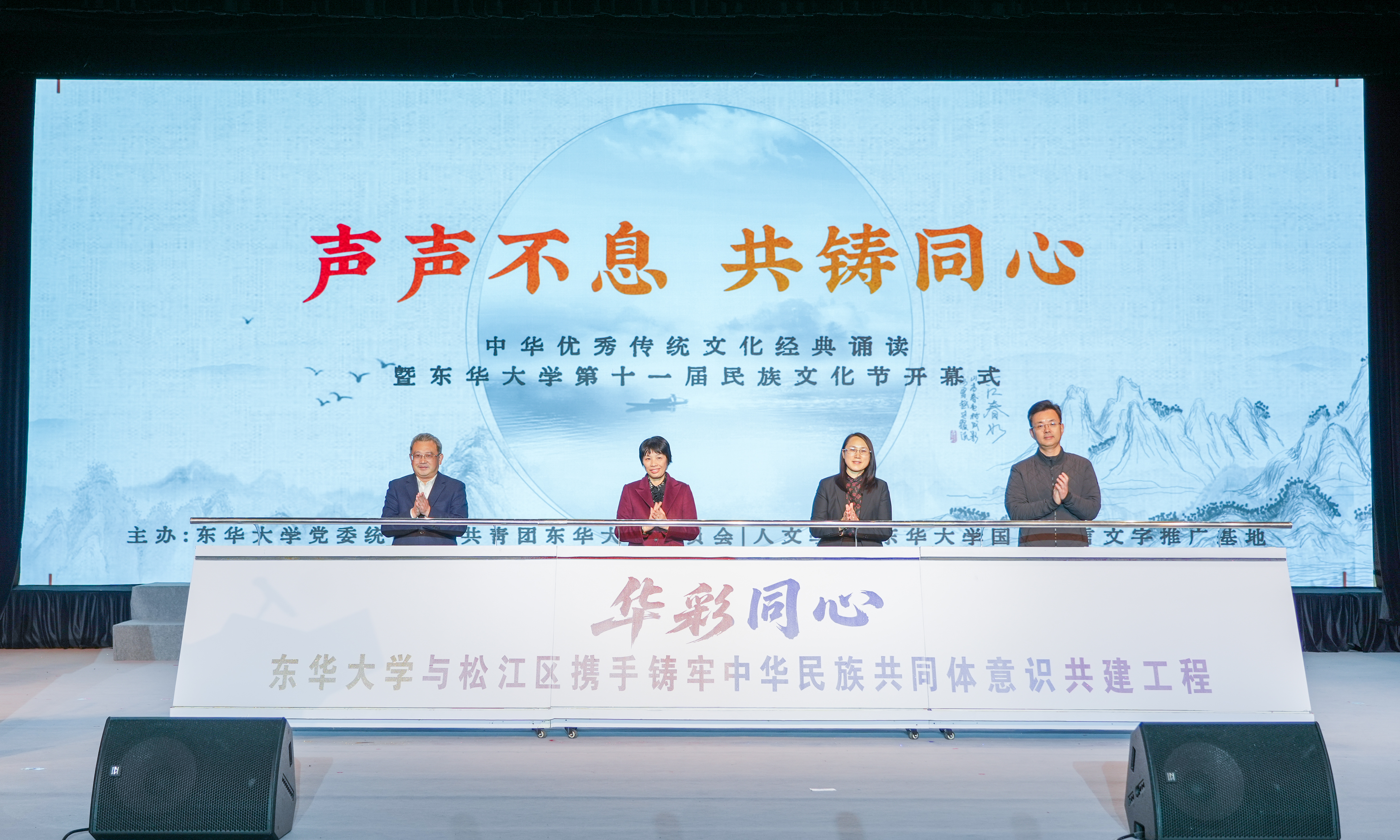 本次活动由东华大学党委统战部、团委、人文学院和校国家语言文字推广基地联合主办,多家单位协办支持。整场活动在《少年中国说》的激昂诵读中圆满落幕,展现了东华师生传承文化、团结奋进的青春风采。