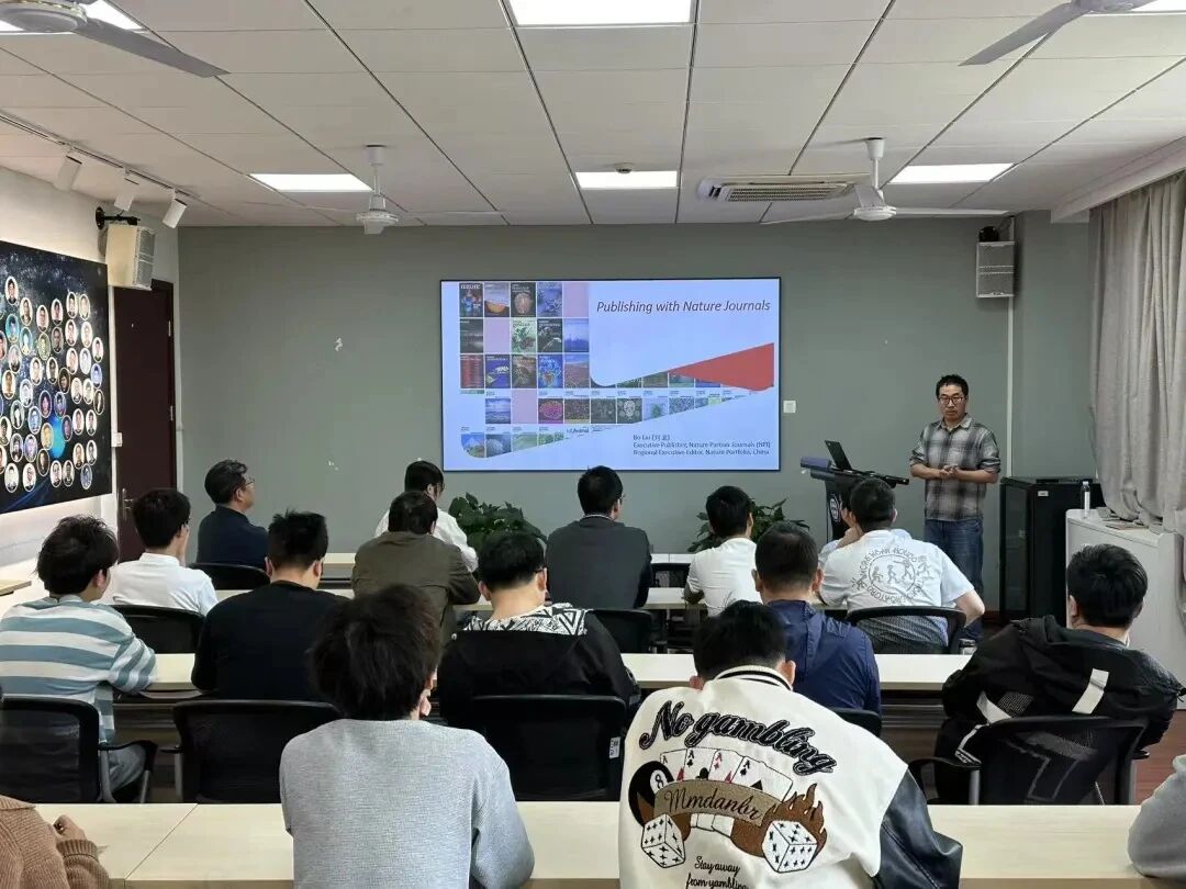 刘波博士从编辑视角系统介绍Nature期刊体系与稿件处理流程,围绕高水平论文的选题定位、结构组织、论证表达与写作规范,提出兼具针对性与实操性的指导建议。讲座结合太阳能电池、半导体光电器件等领域的典型案例,深度解析编辑初筛核心关注点与审稿决策底层逻辑,精准回应师生在顶刊投稿中的共性困惑与关键痛点。校民盟盟员、校内骨干教师、科研人员及青年学子踊跃参与,现场互动研讨热烈深入,学术氛围浓厚,有效搭建了校内外学术交流的桥梁,为提升师生科研能力注入强劲动力。