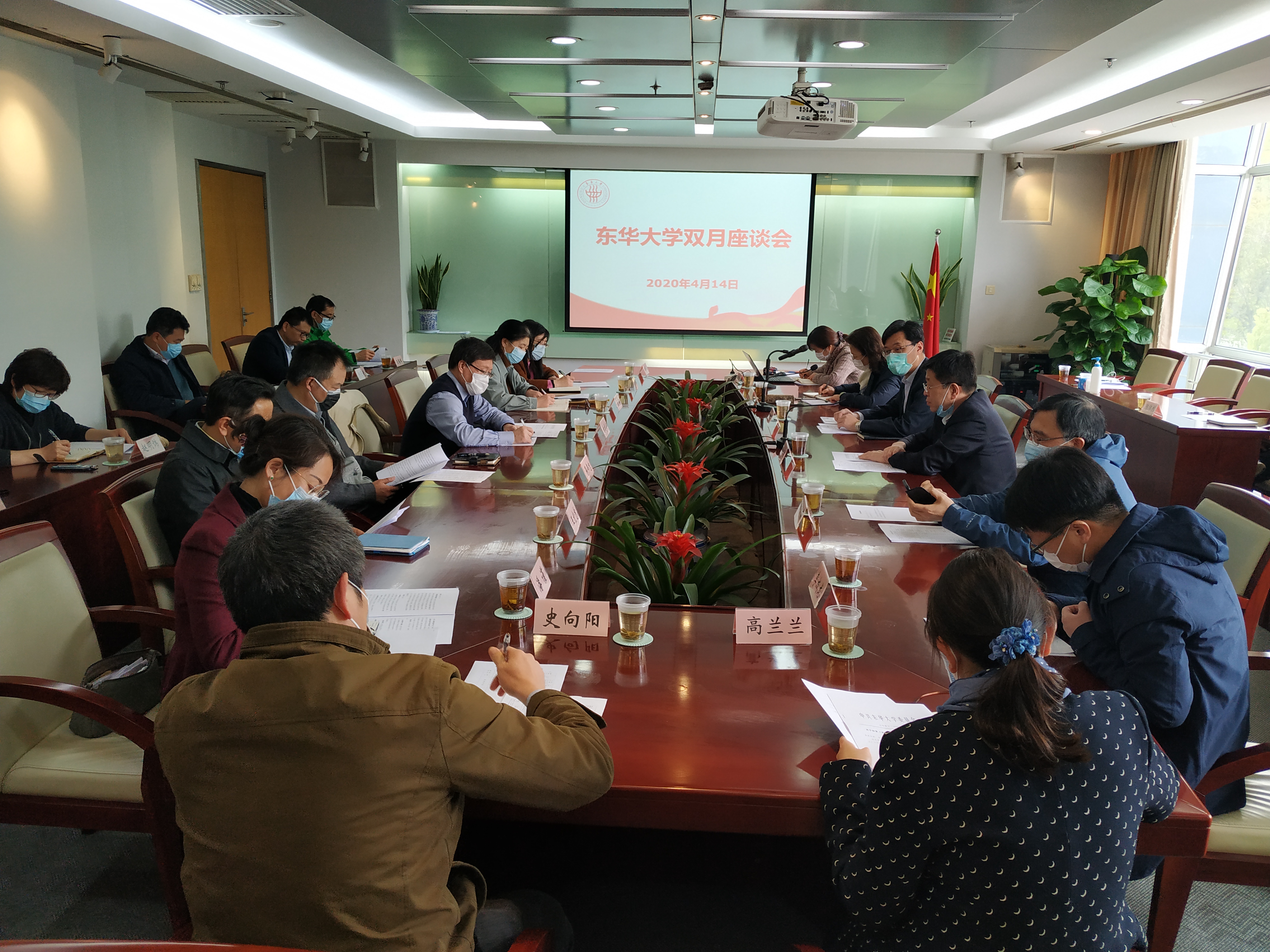 4月14日下午,学校在松江校区召开双月座谈会。党委书记刘承功、校长俞建勇、党委副书记崔运花、副校长卿凤翎出席座谈会,与各民主党派、统战团体负责人及各级人大代表、政协委员等共话疫情防控和2020年重点工作。