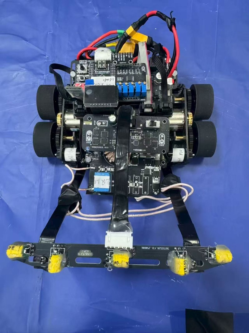 缩微电磁组是智能汽车竞赛中聚焦电磁感应技术与微型车控设计的组别,参赛队伍使用竞赛组委会指定的微控制器作为核心控制平台。该组别依赖电磁感应原理实现赛道感知与导航,通过五路电感采集通有 20kHz 交变电流的漆包线赛道信号,经信号放大、滤波与算法处理识别赛道信息。赛道包含直线、折线、十字交叉线、六边形环岛等元素,且在折线内角处布置锥桶,要求车模沿锥桶外侧绕行。由于赛道空间紧凑且对供电有特殊要求,需自制无线充电发射与接收电路,依赖储能法拉电容供电,车模需具备轻量化结构、低重心设计以及串级 PID等稳定控制算法,以保障高速行驶中的转向精度与运行稳定性,全面锻炼参赛队伍在机械结构设计、电磁传感技术、电源管理及智能控制算法等领域的综合工程应用能力。