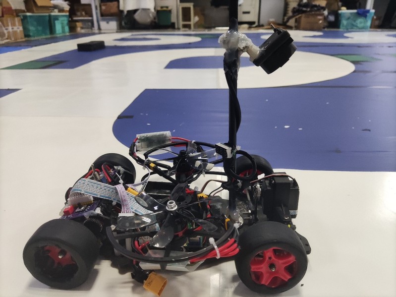 极速光电龙芯组是智能车竞赛中的传统高速竞速组别,在今年的赛题中使用龙芯2k0300作为主控芯片,强调对国产自主芯片的应用与极限性能的追求。参赛队伍使用竞赛组委会指定的龙芯微控制器作为核心控制平台编写控制算法,基于摄像头采集到的赛道图像特征进行实时感知与高速导航。此外,今年在降低了摄像头限高的同时,允许利用路标和彩色摄像头进行路标判别,为传统赛道新增了创新元素。赛道元素丰富,包含急弯、十字路口、环岛、坡道、路障等经典元素,对车模的循迹性能、运算速度和决策能力提出极高要求。同时使用高效能的无刷电机及自制电调,搭载负压风扇以提高小车摩擦力,提高小车高速变向的性能。为达到极高的行驶速度,车模需具备优秀的空气动力学设计、极高的机械稳定性以及精准且鲁棒的控制算法,充分锻炼参赛者在硬件设计、图像处理以及控制理论方面的综合创新与实践能力。